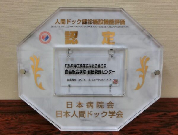 この度、日本人間ドック学会による「人間ドック健診施設機能評価」を受審しました。複数の委員による立ち入り調査があり、2018年12月 一定の基準を満たした健診施設として認定されました。