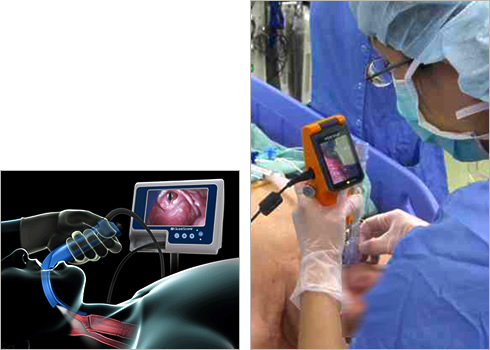 ところが実際の臨床現場では,少数の患者さんでは直視で声帯を確認することが困難な場合があります.また,頚部に障害があって後屈が望ましくない症例もあります.以前でしたら気管支ファイバースコープしか選択肢がなく,基本は眠ってもらう前に患者さん自身の呼吸を残した状態で局所麻酔を併用しておこなっていました.