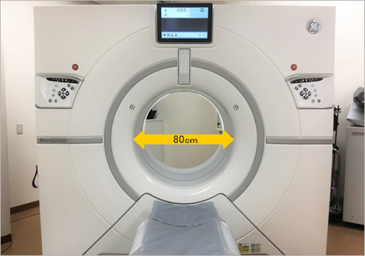 これまでのCT装置より開口径(トンネルの直径)が10cm広くなり、患者様に圧迫感を与えることなく検査がスムーズに行えるようになりました。