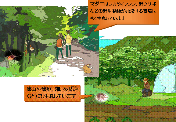 - 広島県立総合技術研究所 保健環境センター:「野外で活動する時にはダニにご用心!」より引用