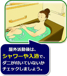 - ・帰宅後は服をよくはたき、入浴して身体をよく洗う(服は放置せず洗濯する)