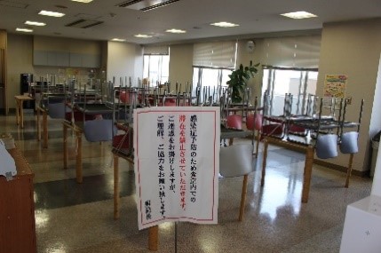 訓練室等では時間調整や人数制限を行い3密とならないよう配慮しています。また、病棟の食堂内では滞在を禁止しています。